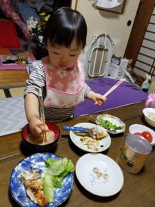 3カ月間のという短期間で、器用にペンを使ったり、お箸を持ち食事をしています。